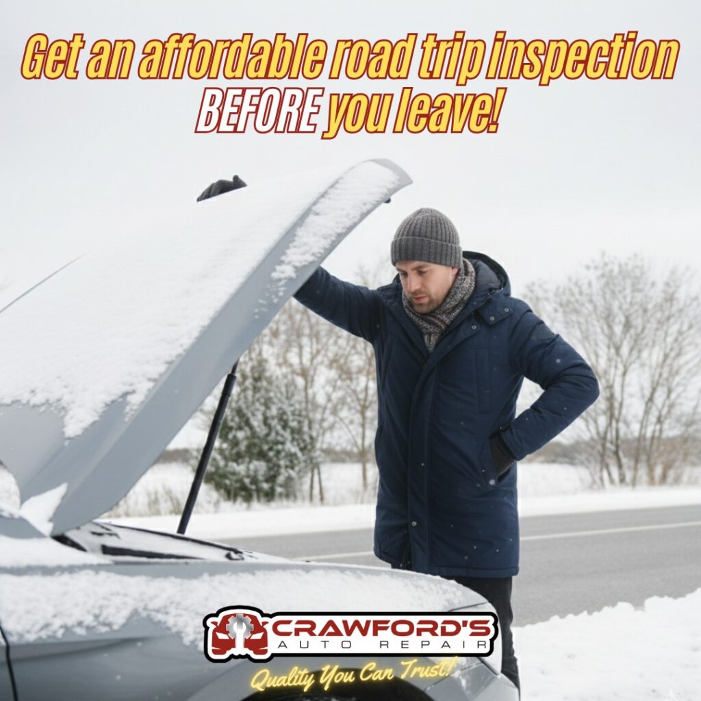 Breaking down on a road trip can be even worse in the winter. If you’re planning to drive out of town for the holidays then bring your vehicle in for an affordable road trip inspection. Schedule an appointment today. #roadtripinspection #chandlerautorepair #gilbertautorepair