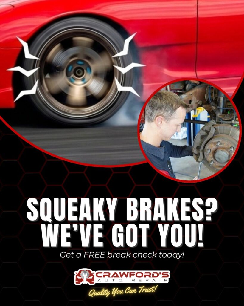 Is your car making strange noises when you hit the brakes? That squeak, grind, or thump is your car’s way of saying it needs attention. Don’t wait until a small issue becomes a big repair! Stop by Crawford’s Auto Repair for a FREE brake check. #freebrakecheck #brakeinspection #brakeservices